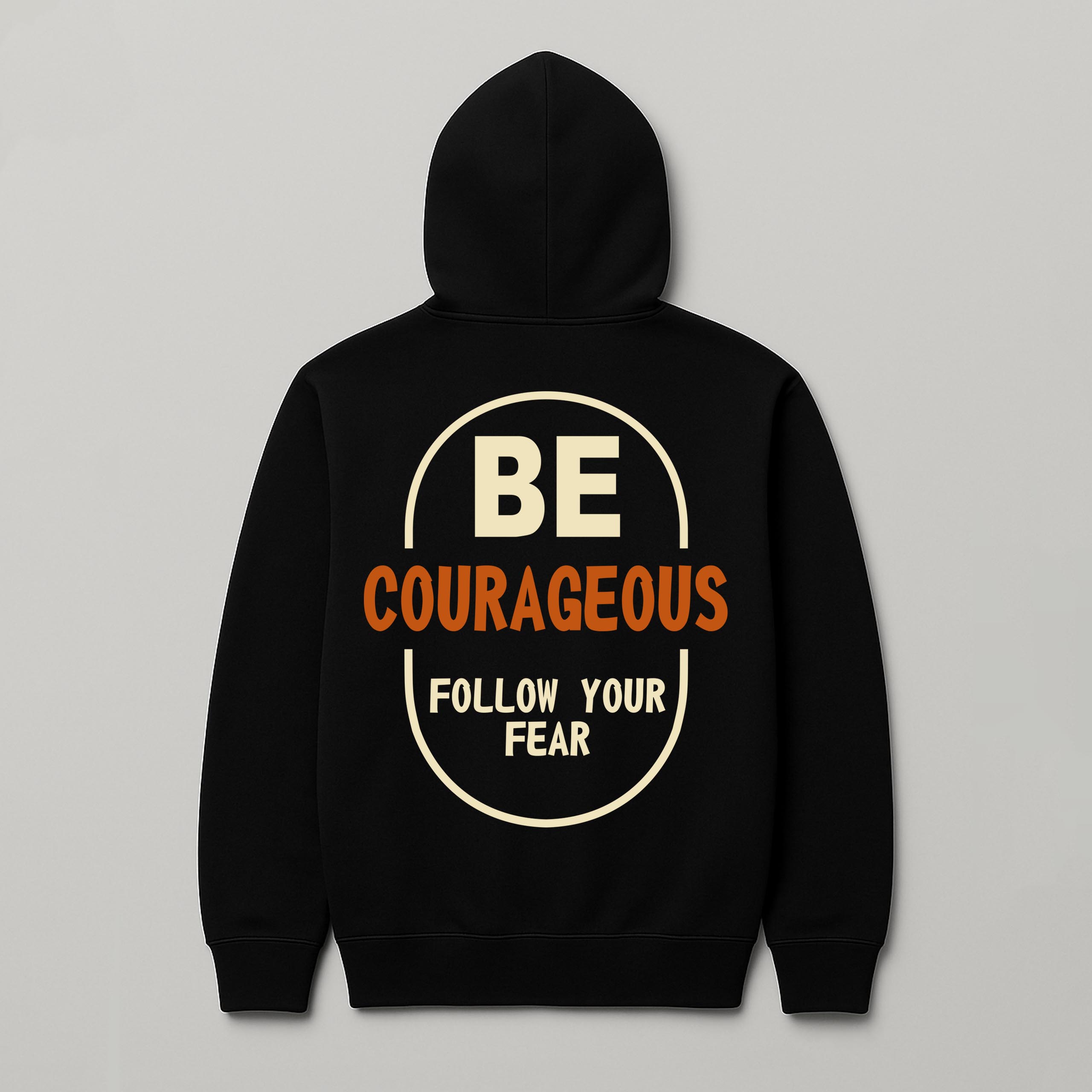 Na przodzie bluzy znajduje się logo marki, a na plecach duża grafika „BE COURAGEOUS – FOLLOW YOUR FEAR” w kontrastowych barwach. To odważne hasło, które podkreśla charakter i inspiruje do przełamywania barier.